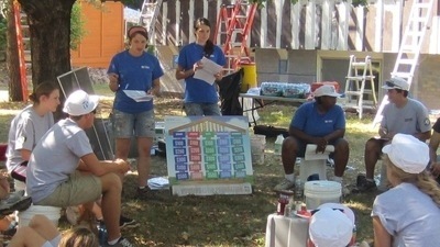 Volunteers arrive! My site supervisor and I give a talk about Twin Cities Habitat's mission, build site safety, and what the volunteers will get up to that day. Everyone gets started.