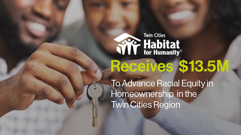 Twin Cities Habitat for Humanity, along with Habitat for Humanity International and 84 U.S. Habitat affiliate organizations, recently received $436 million in unrestricted giving from American author and philanthropist MacKenzie Scott. Of that, Twin Cities Habitat for Humanity received $13.5 million. This transformational donation will substantially help further Habitat’s vision of a world where everyone has equitable access to a safe, decent, and affordable place to call home.