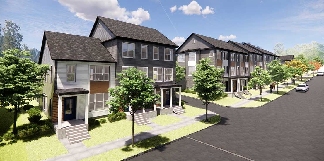 Concept drawings for the new 17-unit townhome development that Twin Cities Habitat is building in the Harrison neighborhood of Minneapolis in 2023. Construction has already begun!